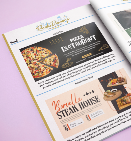 Rhodes Discovery is the perfect tool if you are looking to hit the tourist audience of Rhodes. Due to our magazine being placed in the main stay areas for tourists, we offer an avenue of marketing to spread the word about your business or event